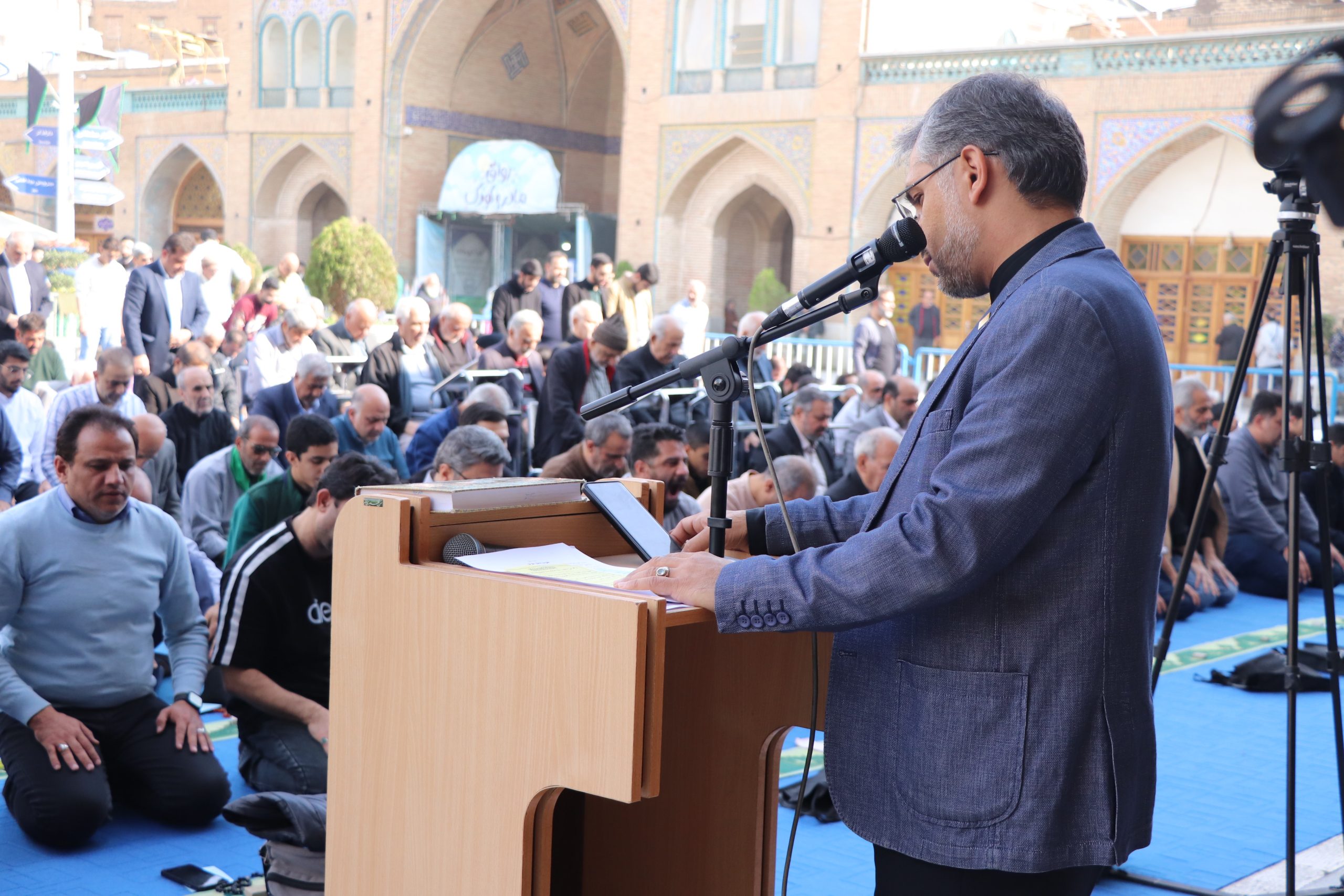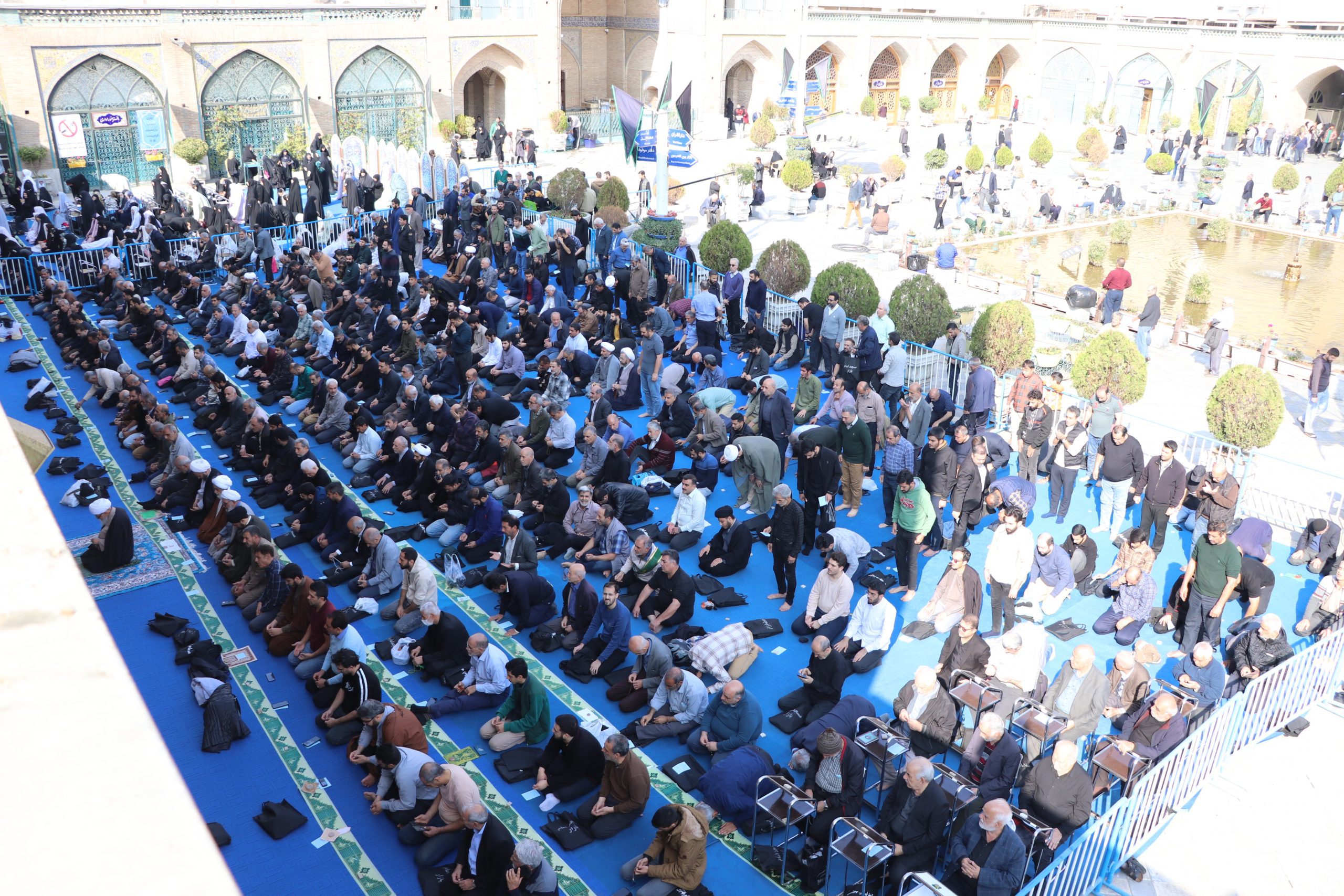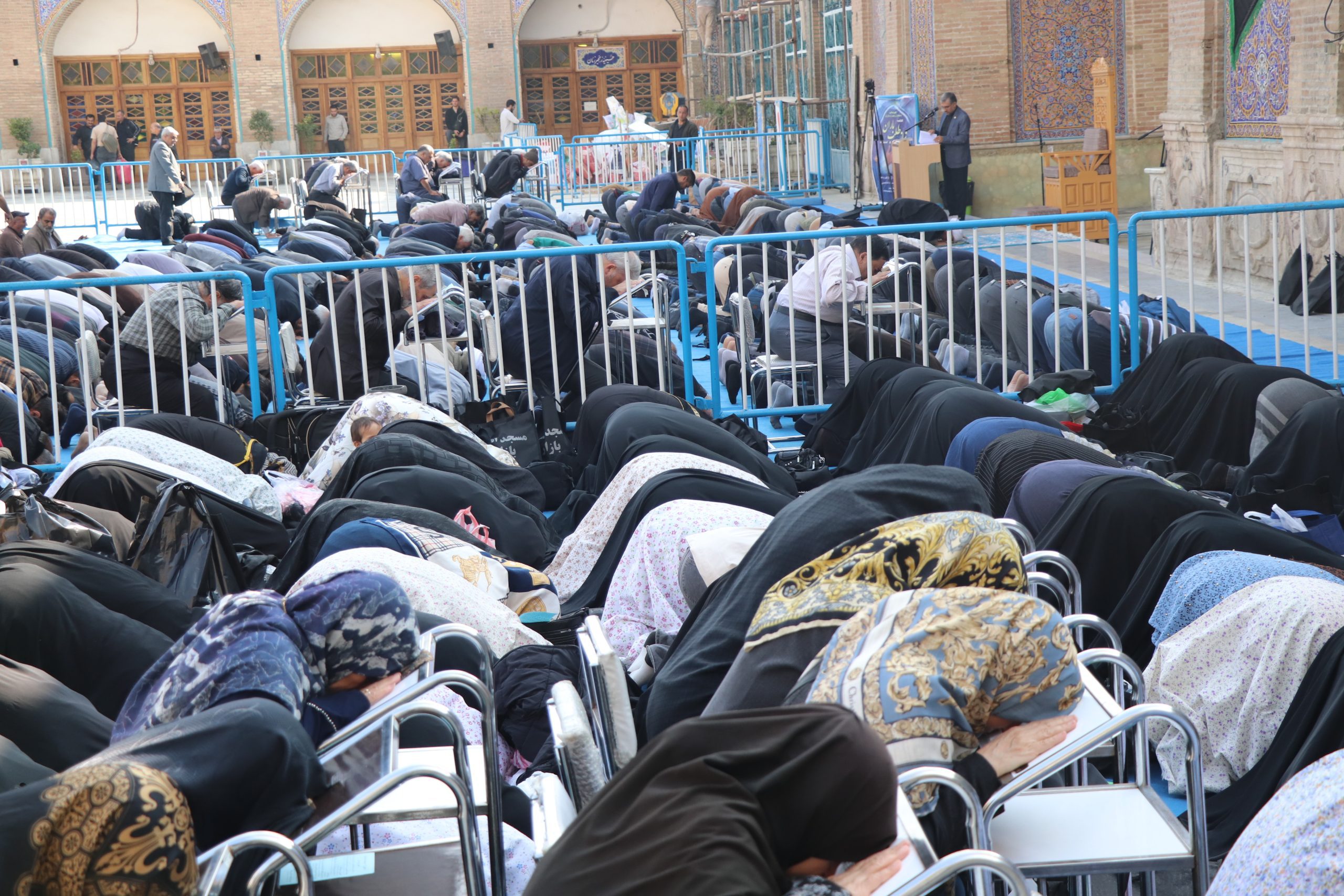 اقامه نماز طلب باران توسط آیت الله عالمی، امروز دوشنبه در حیاط مسجد امام خمینی (ره) بازار تهران در حضور گسترده آحاد مردم